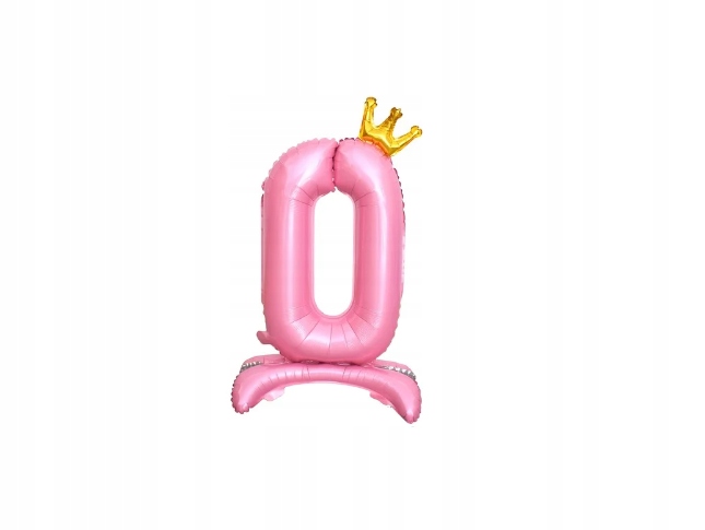 Balon foliowy stojący cyfra 0 różowa z koroną, 85 cm