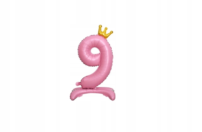 Balon foliowy stojący cyfra 9 różowa z koroną