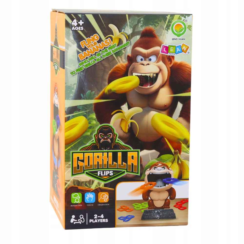Szukasz gry, która zagwarantuje mnóstwo śmiechu i zabawy? Gorilla Flips to zręcznościowa gra rodzinna, w której dzieci i dorośli mają jeden cel – trafić kolorowymi obręczami do obracającego się goryla! Wesoła mechanika i aktywna forma gry zapewniają świetną rozrywkę dla całej rodziny.