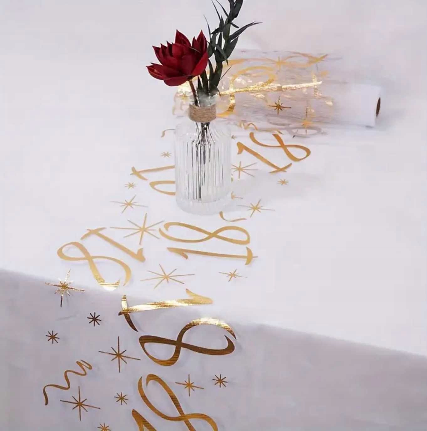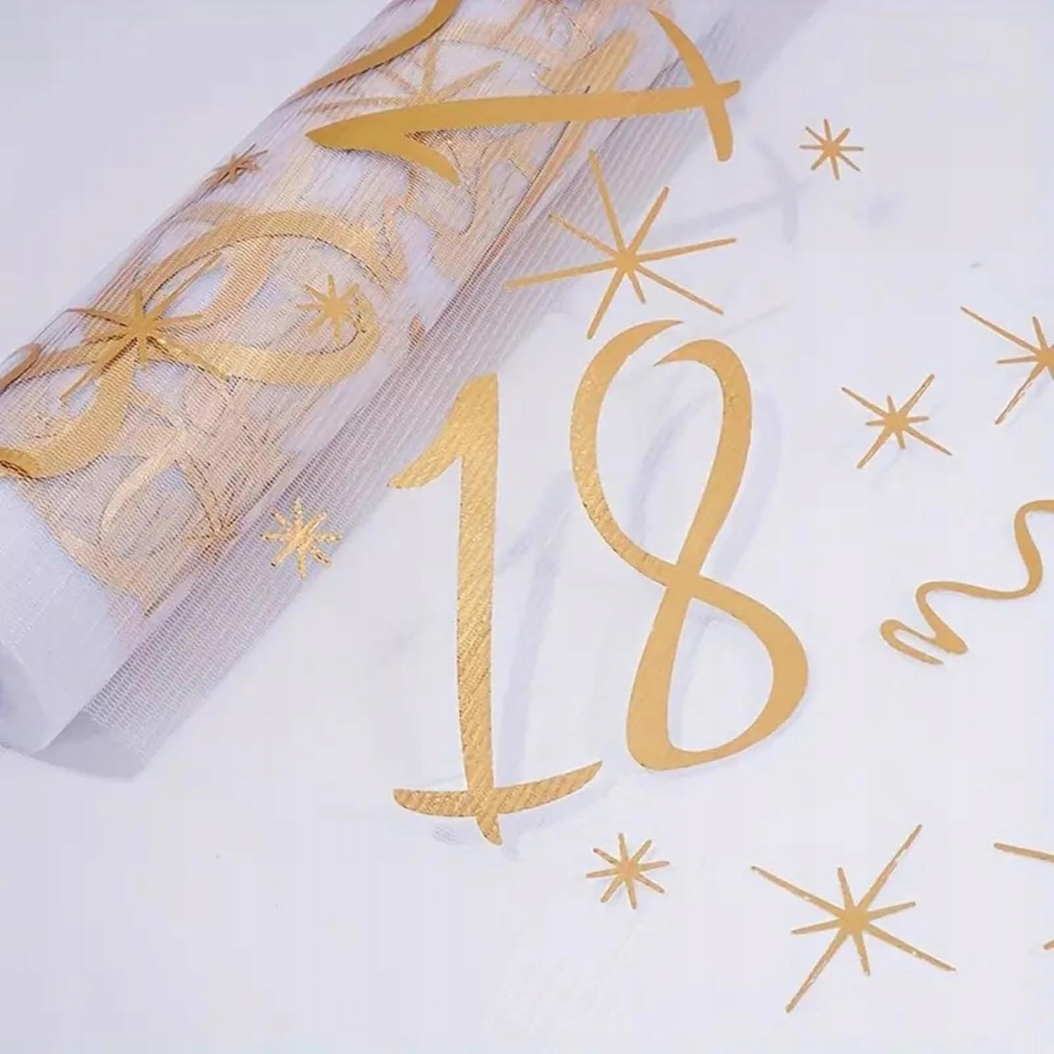 Organza z nadrukiem na 18 urodziny, bieżnik na stół 28x275cm