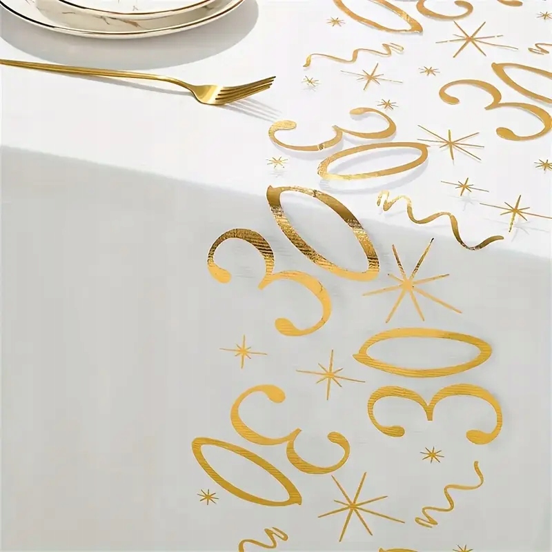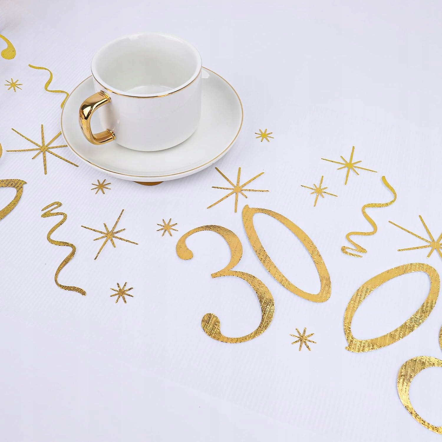 Organza z nadrukiem na 30 urodziny, bieżnik na stół 28x275cm