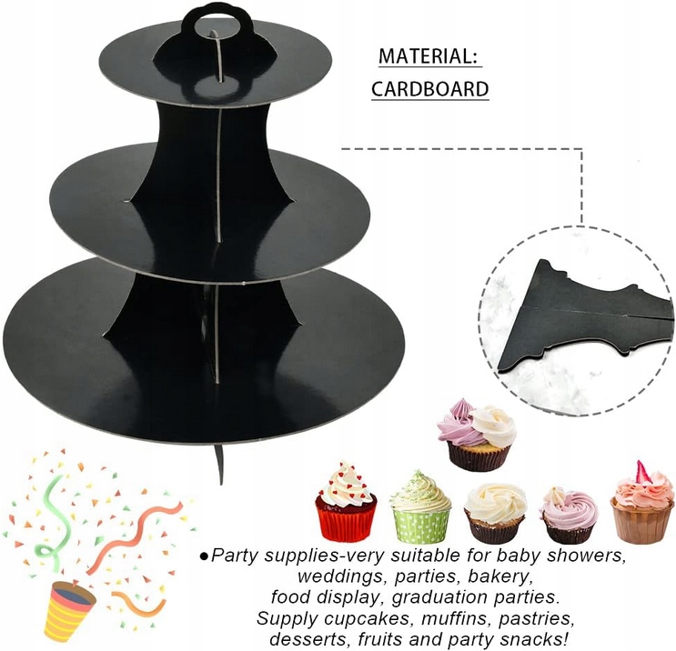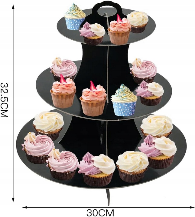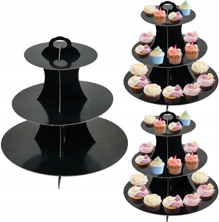 Patera Papierowa Stojak Na Ciasto Babeczki CZARNA Urodziny Party