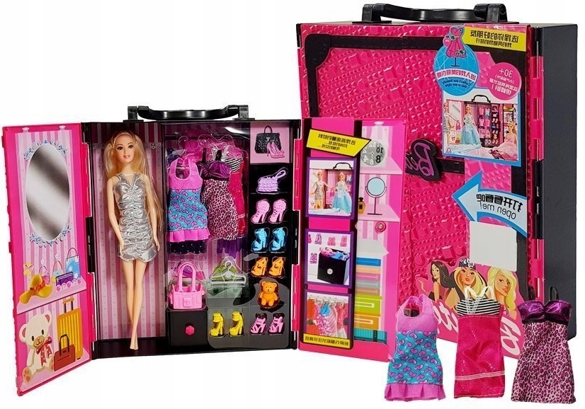 Garderoba z wieloma akcesoriami jest kompletną zabawką, która zajmie dziewczynki na długie godziny. Dodatki i ubranka, jakie znajdują się w środku, są ogromnym urozmaiceniem tej zabawy — lalkę można stylizować na wiele odmiennych sposobów.